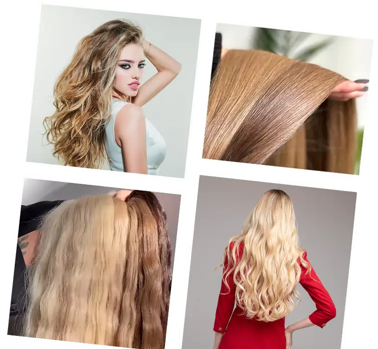 | Thin adhesive wefts bonded flat to the hair, close to the scalp. | Individual strands fused with a keratin bond. | Rows of hair attached via beads or sewing, so we don’t use heat or adhesives. |
